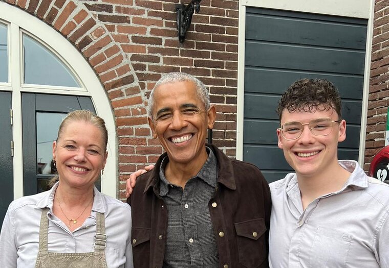 Rond half 1 kwam Obama met zijn gevolg aan bij het restaurant. Een hele happening, vertelt Cindy. „Het was een hele groep, er waren wel zestien beveiligers mee. Pas toen ontdekten we om wie het ging. Nou, dan ben je wel even stil en verbaasd. Mijn zoon Micka en ik mochten hem ontvangen en de hand schudden. Micka heeft daarna verteld over onze gerechten. We hebben net een nieuwe menukaart en de Engelstalige versie was nog niet klaar.”